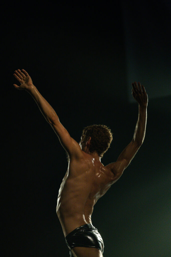 La performance se sitúa en la exploración de un cuerpo desprovisto de intención narrativa, habitado desde su pura materialidad. Un cuerpo entendido como muscularidad, articulación y densidad del movimiento, que se activa sin un centro de mando visible. Todo ello emerge desde una lógica interna, casi mecánica, donde el gesto no responde a una voluntad representativa, sino a la propia organización del cuerpo en el espacio, exponiendo un estado de presencia que no busca ser leído, sino sostenido.