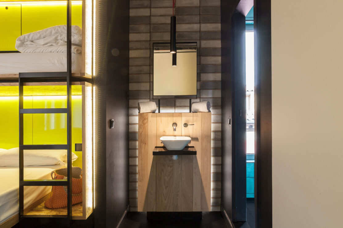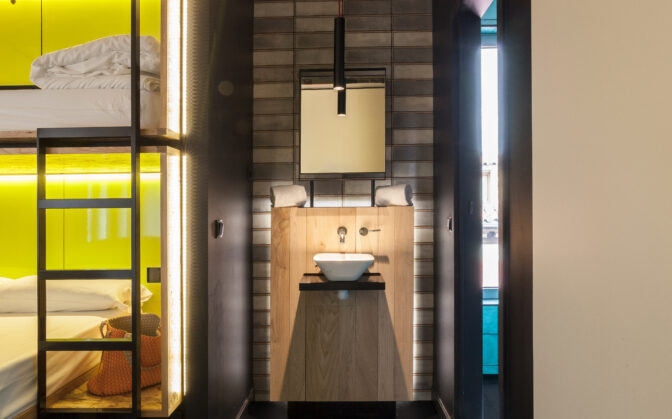 La habitación 305 es perfecta para familias de tres. Hay suficiente espacio para que nadie se tropiece con las maletas, una cama grande para los padres y otra cómoda para el más pequeño, aunque sea ya casi un adulto. Además, todo está dispuesto de manera que cada uno tenga su rincón sin perder de vista a los demás. Decimos “familiar”, pero vamos, que también encaja de lujo para tres colegas a los que no les importe dormir juntos, porque esta pedazo de habitación tiene una cama doble y una cama individual. También tiene un baño propio, así que podéis tomároslo con calma.