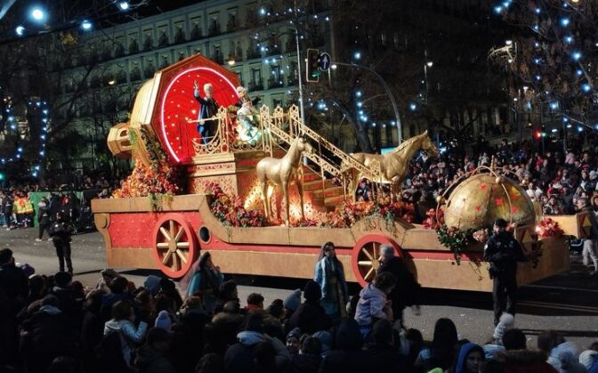 La cabalgata más bestia de Madrid arranca en el Paseo de la Castellana el día 5 de enero, aunque no os penséis que las demás son moco de pavo: hay mogollón repartidas por toda la ciudad. Id mentalizados, porque esto no es un paseo tranquilo, es una guerra en la que los caramelos son las balas. Traed casco… o al menos paciencia, porque os vais a cruzar con padres armados hasta los dientes con paraguas invertidos, auténticas máquinas de acaparar caramelos sin despeinarse. Y ojo, que también hay niños subidos en escaleras y algún que otro adulto rebuscando los caramelos que todavía no tienen dueño, como si fuera un botín de guerra.