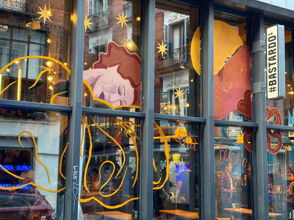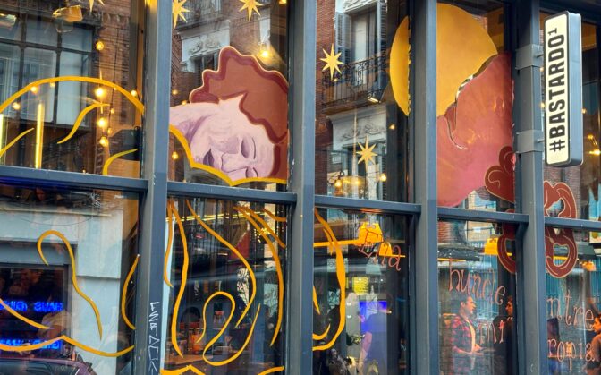 Ya sabéis que en Bastardo Hostel nos gusta estar haciendo cosas todo el rato. Así que, como no podemos estar quietos ni un minuto, hemos vuelto a renovar el arte de nuestra indiscreta cristalera.