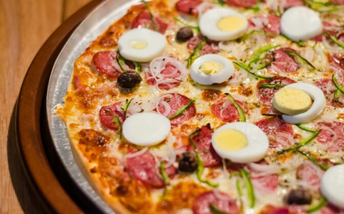 La pizza es directa y sin complicaciones: empieza con una buena masa, que puede ser fina y crujiente o más gordita y esponjosa, según te guste. Luego lleva salsa de tomate que le da sabor y carácter, queso fundido que nunca puede faltar, y los toppings que tú quieras: jamón, pepperoni, champiñones, verduras… lo que se te ocurra. Cada ingrediente cumple su función sin hacerse el importante, y juntos forman ese plato que siempre funciona. Es simple, efectiva y adictiva… y por eso nadie se resiste a un buen trozo.
